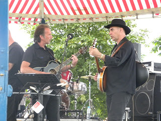 Gisteren gespeeld tijdens een buurtfeest. Of was het nu een verlaat bruiloftsfeest? Feit is wel dat de hele buurt aanwezig was. We konden lekker buiten spelen. Mooi weer. Alles prima geregeld. Grote tenten buiten, een opblaaskasteel (niet voor ons helaas) en een cateringkar met bar (ook een beetje voor ons gelukkig). Nog een paar nummertjes samen gespeeld met "het andere bandje van de avond": een fantastisch clubje van 5 broers met een gemiddelde leeftijd van bijna 70 jaar die nog altijd samen muziek maken. Deels op hun originele instrumenten. Prachtig toch? We hadden nogal wat overlap in het repertoire (kan niet anders, die mannen hebben 300 nummers op hun lijst staan). Dachten we dat wij een omvangrijk repertoire hadden. Maar, wie weet als we net zo oud zijn als deze mannen en dan ook nog mee kunnen en mogen doen :) komen we ooit nog eens in de buurt met onze setlijst. Eerst maar eens kijken of we al onze Eagles nummertjes erin krijgen.